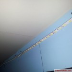Auf der rechten Seite der Anlage sind zum Vergleich die schwächeren LEDs aufgehängt. Diese werden später im Schattenbahnhof eingbeaut, wenn Wartungsarbeiten durchgeführt werden müssen.