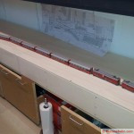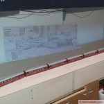 Nun habe ich den originalen Gleisplan auf 1:87 umgerechnet und auf den Segmenten 21-24 eingezeichnet. Neu ist auf diesen Bahnhofssegmenten, dass ich die Geleise direkt auf das Sperrholz befestigen werde, da sich der Kork als recht problematisch in Bezug der Gleishaltung herausgestellt hat.