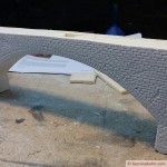 Fertig geritzt! Jetzt wird die Steinstruktur mittels Auftupfen von Schnellspachtel angebracht. Sieht gleich viel besser aus..