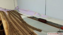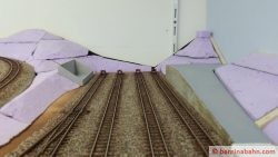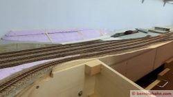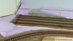Die letzten Tage habe ich vor allem dem Rangierfeld gewidmet. Da dieses eingebettet in einem Einschnitt liegt, habe ich mich entschieden, diesen mit Styrofoam zu bauen. Das Material ist sehr leicht, relativ einfach zu bearbeiten und es behält exakt die Form, die man will (im Gegensatz zum Gipsernetz)
