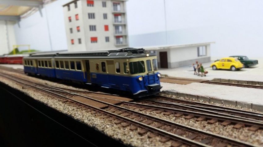 Heute durfte ein MOB-Triebwagen eines Modelleisenbahnkollegen seine Runden drehen..