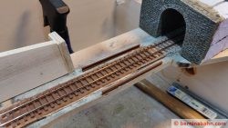 Im Bereich des Lehnviaduktes musste das Schotterbett in ein Metallkorsett verpackt werden, da der Berg in ständiger Bewegung ist. Dieser Umstand wird im Modell ebenfalls abgebildet.
