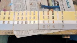 - oberste zwei Stockwerke mit Gelb eingefärbt. Dieser musste nachträglich wieder mit etwas weisser Farbe aufgehellt werden, weil das Gelb zu stark und grell wurd.