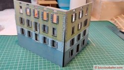 Wie bei jedem Gebäude kam dann die „Schmutzwasser“-Behandlung. Diese macht, dass das Haus nicht so „neu“ aussieht, sondern Verwitterungsspuren aufweist. Zudem werden alle Konturen (z. B. die der Ecksteine) besser betont.