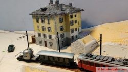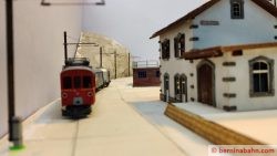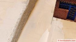 Etliche Mäuerchen, die die beiden Segemente enthalten, wurden gegipst und geritzt. Die kleine Unterführung habe ich voll aus Gips ausgegossen und eingepasst. Die Felswand in der südlichen Ausfahrt ist mit Silikonabgüssen geformt und mit dem Stechbeitel an die Verhältinisse angepasst worden.