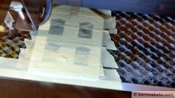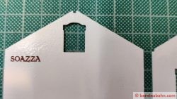Eine geeignete Idee fand ich darin, indem ich die zu lasernde Stelle mit Malerklebeband überdeckte, um anschliessend den Schriftzug „Soazza“ direkt auf die Fassade zu lasern. Nach einigen Versuchen fand ich die richtigen Einstellungen.