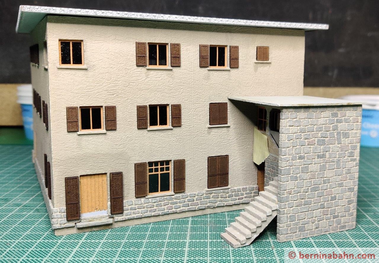 Die Zielgerade ist in Sicht! Nachdem nun das Problem mit der Fassadenstruktur gelöst wurde, machte ich mich an den Treppenaufgang, der ja auch ziemlich speziell ist für ein Gebäude.