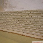 Damit nun die Steine plastischer wirken, drücke ich mit einem leicht abgeschrägten 3 mm – Vierkantholz die Fugen ein. Einige Steine drücke ich im Ganzen etwas zurück.